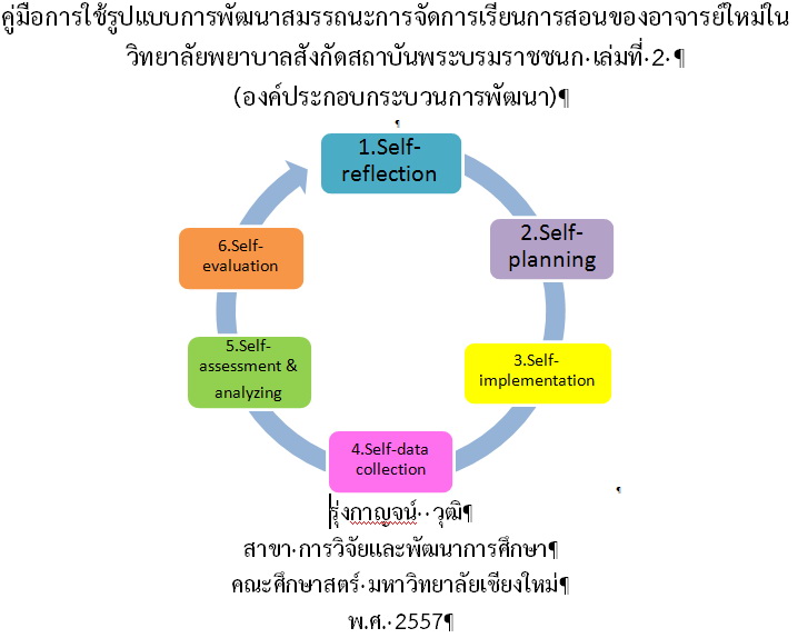 การพัฒนาสมรรถนะการจัดการเรียนการสอนของอาจารย์ใหม่ในวิทยาลัยพยาบาลสังกัดสถาบันพระบรมราชชนก |