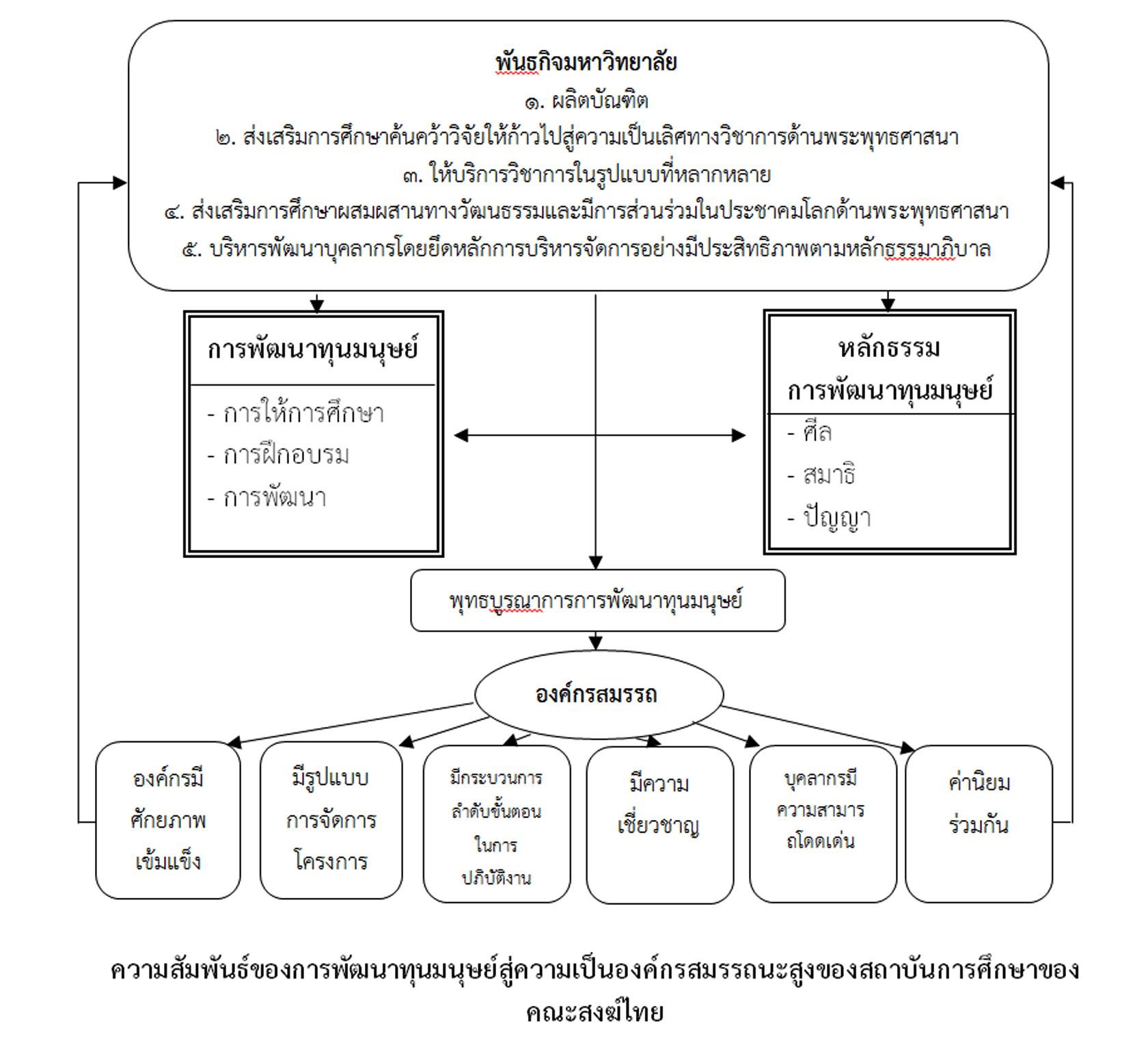 | Description | การพัฒนาทุนมนุษย์ในสถาบันการศึกษาระดับอุดมศึกษาของคณะสงฆ์ไทยมีนโยบายที่กำหนดทิศทางการพัฒนาบุคลากรที่ชัดเจนมีการวางแผนเส้นทางความก้าวหน้าของบุคลากรทุกคนเน้นการจัดกิจกรรมเพื่อพัฒนาประสิทธิภาพในการปฏิบัติงานปลูกจิตสำนึกในการปฏิบัติหน้าที่มีการพัฒนาทุนมนุษย์สัมพันธ์ โดยสนับสนุนส่งเสริมให้บุคลากรเข้าร่วมฝึกอบรมเพื่อสร้างองค์ความรู้ ส่งเสริมชำนาญและก่อให้เกิดประสบการณ์ใหม่ๆ และเพื่อเพิ่มพูนประสิทธิภาพการทำงานโดยปราศจากการเบียดเบียนซึ่งกันและกันมีการพัฒนางานให้เป็นไปตามครรลองคลองธรรมมีการนำหลักศีลมาประยุกต์ใช้เพื่อปรับปรุงระบบการบริหารจัดการในองค์กรมีการส่งเสริมในเรื่องการศึกษาในสาขาวิชาหรือหลักสูตรสูงขึ้นมีการสนับสนุนในเรื่องทุนการศึกษาเพื่อส่งเสริมและสนับสนุนให้กับบุคลากรเล่าเรียนในระดับสูง โดยให้รู้เท่าทันการเปลี่ยนแปลงในอนาคตอย่างมีประสิทธิภาพมีการกำหนดเป็นนโยบายของมหาวิทยาลัยเป็นองค์กรแห่งการเรียนรู้โดยเพิ่มศักยภาพของบุคลากรในองค์กรโดยผ่านกระบวนให้การศึกษาสนับสนุนให้ทุนการศึกษาไปศึกษาต่อในชั้นที่สูงขึ้น ส่งเสริมให้บุคลากรไปอบรมสัมมนาเพิ่มพูนความรู้ตามสายงานที่ตนเองปฏิบัติงาน เพื่อนำองค์ความรู้ที่ได้รับมาปรับปรุง เพิ่มทักษะในการทำงานมีหลักเกณฑ์การพัฒนาบุคลากรโดยการเพิ่มศักยภาพของบุคลากรในองค์กรโดยผ่านกระบวนให้การศึกษา |