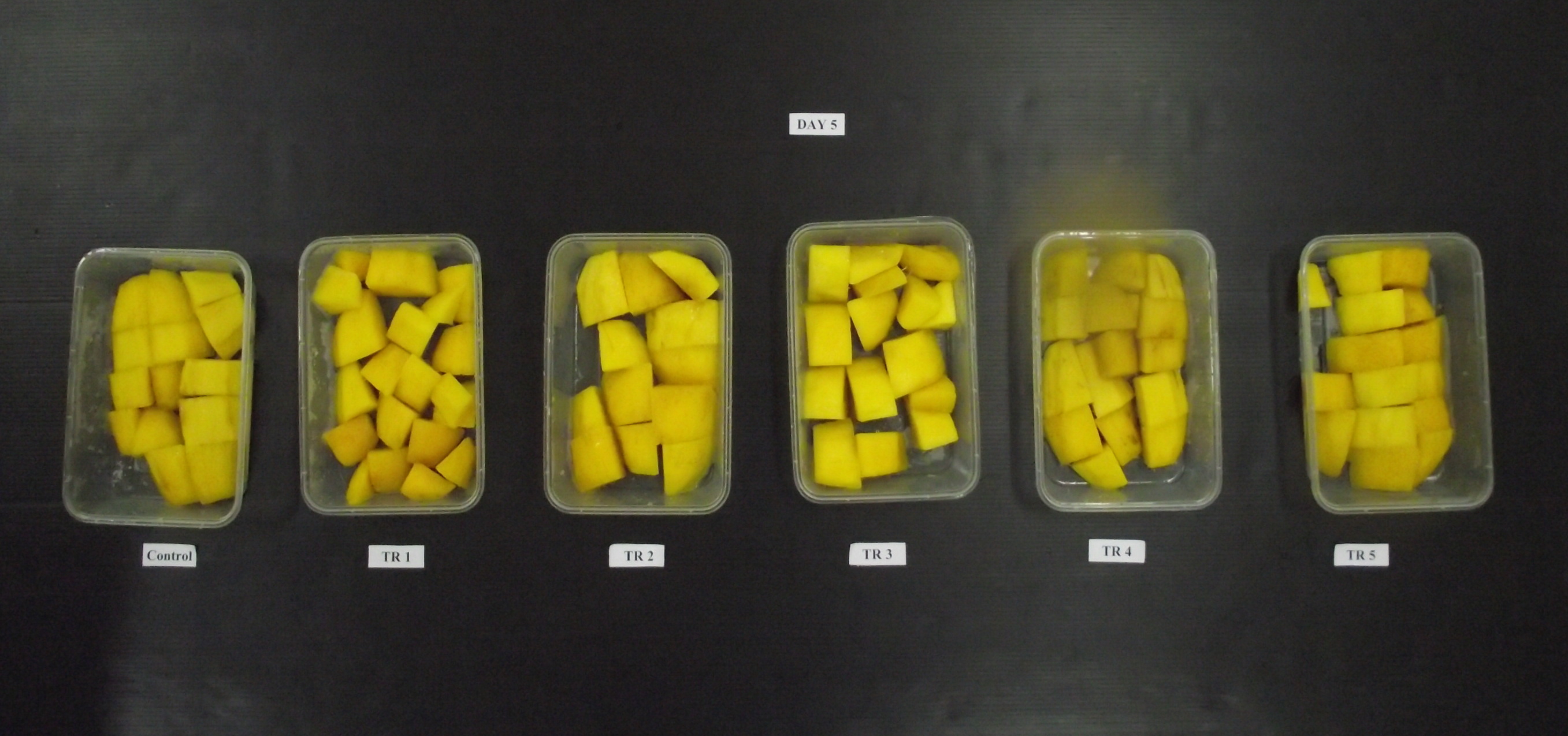 | Description | สภาวะที่เหมาะสมของสารเคลือบผิวไคโตซานร่วมกับกัมอะราบิกที่มีผลต่อคุณภาพของมะม่วงตัดแต่งพร้อมบริโภค พบว่าการใช้สารละลายไคโตซาน ร้อยละ 0.25 ร่วมกับสารละลายกัมอะราบิก ร้อยละ 5.0 สามารถลดการเปลี่ยนแปลงทางกายภาพ ทางเคมี และสามารถช่วยลดการเพิ่มจำนวนการปนเปื้อนของเชื้อ Erwinia sp. และ E.coli TISTR 780 ได้ในระหว่างการเก็บรักษาที่อุณหภูมิ 5 องศาเซลเซียส เป็นเวลา 5 วัน |