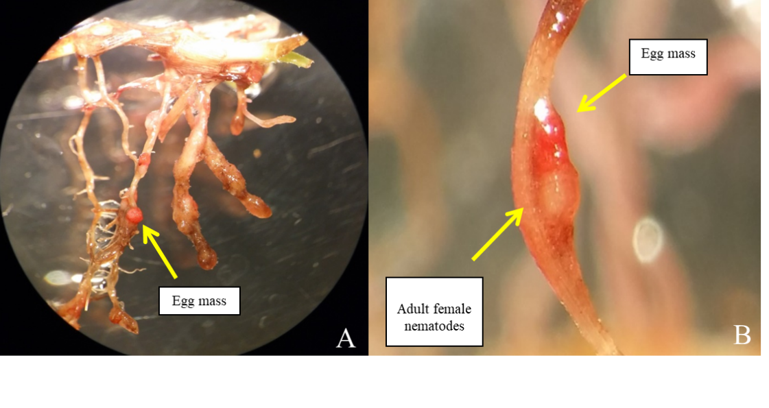 Description Turf grasses heavily damaged by root-knot nematodes lead to economic consequences of golf course turfs. In this study, root-knot nematodes were collected from turf grasses of 19 golf holes located in central Thailand and identified as Meloidogyne incognita using perennial pattern and specific primer;MI-F/MI-R. The study of damage of Meloidogyne spp. on various turf varieties illustrated that Zoysia grasses were the most susceptible variety, followed by Bermuda grasses (Tifdwarf) and Bermuda grasses (Tifegle).
