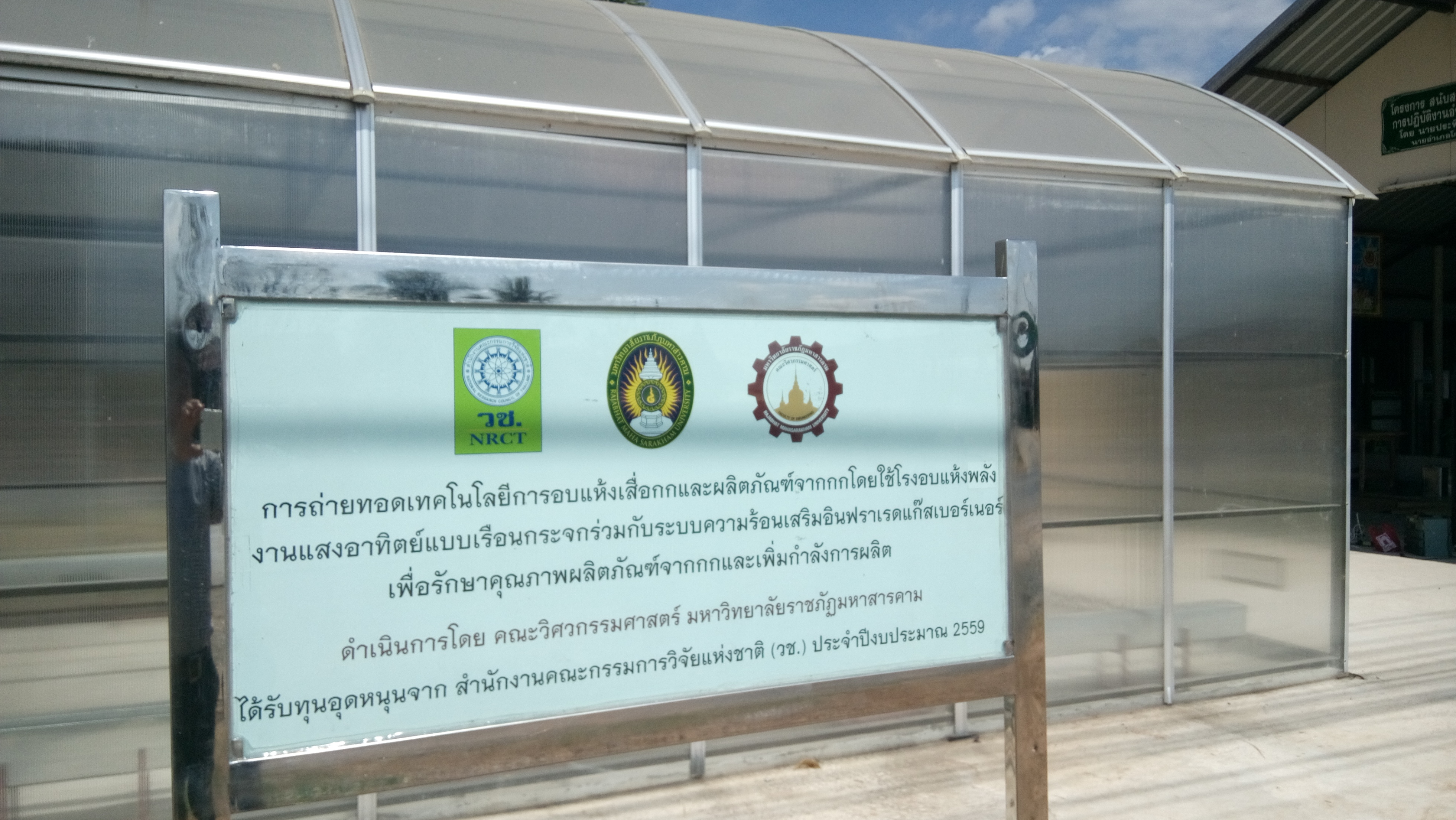 การถ่ายทอดเทคโนโลยีการอบแห้งเสื่อกกและผลิตภัณฑ์จากกกโดยใช้โรงอบแห้งพลังงาน แสงอาทิตย์แบบเรือนกระจกร่วมกับระบบความร้อนเสริมอินฟราเรดแก๊สเบอร์เนอร์ เพื่อรักษาคุณภาพผลิตภัณฑ์จากกกและเพิ่มกำลังการผลิต |