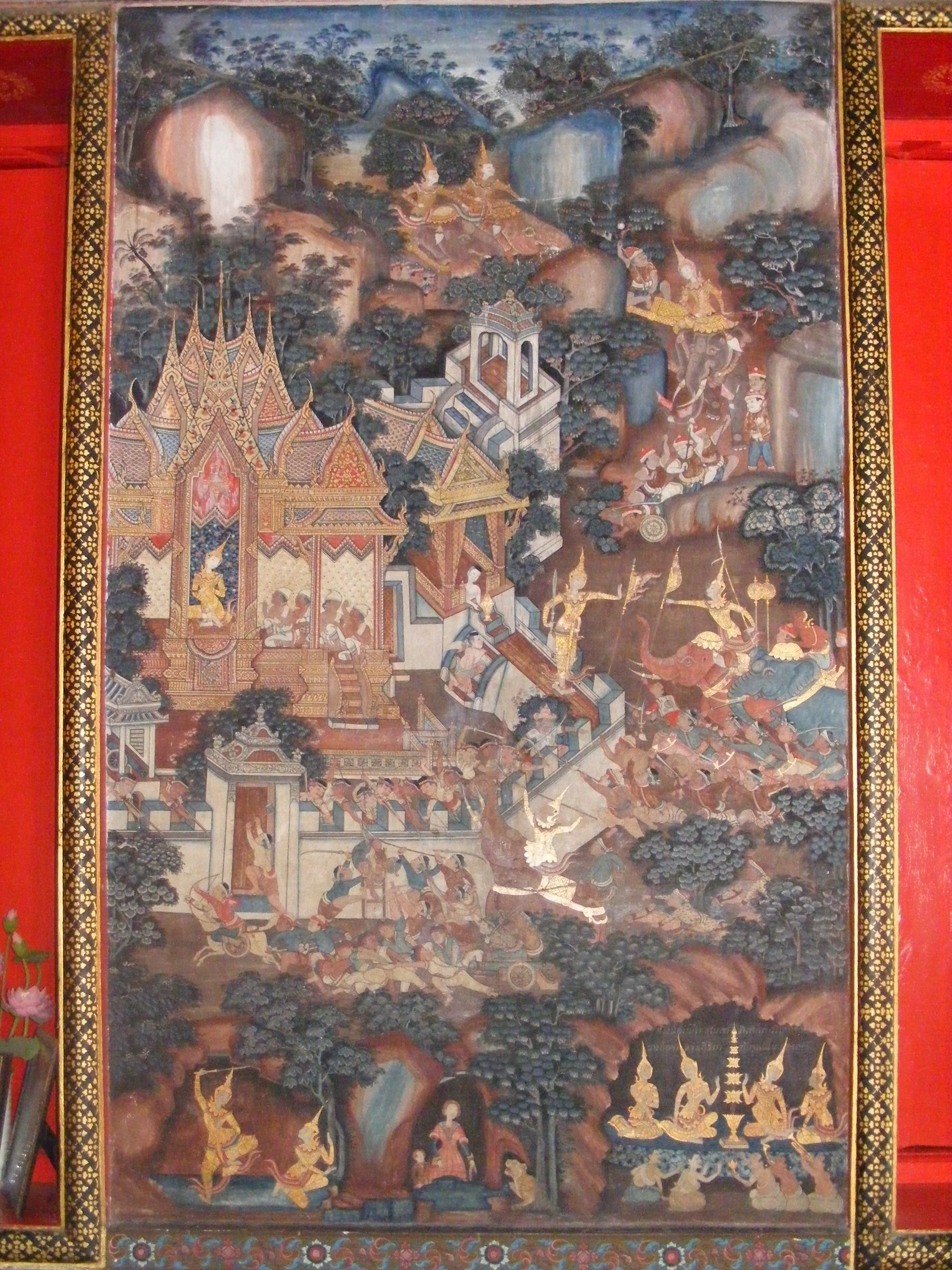 Description การศึกษาจิตรกรรมฝาผนังภาพเขียนสีฝุ่นบนฝาผนังปูนมีรองพื้นซึ่งมีโครงสีเป็นสีแดงสด เรื่องราวที่เขียนเป็นภาพทศชาติชาดก พุทธประวัติและเทพชุมนุม ภาพทศชาติชาดกเขียนครบทั้ง ๑๐ ชาติ และได้ขยายเรื่องเวสสันดรชาดกเป็นเรื่องราวครบ ๑๐ กัณฑ์ ภาพจิตรกรรมเป็นงานในสกุลช่างภาคกลาง จึงแสดงวัฒนธรรมภาคกลาง ได้รับอิทธิพลวัฒนธรรมจากตะวันตก ซึ่งส่วนใหญ่จะเป็นแบบอเมริกัน และในขณะเดียวกันช่างเขียนก็ได้สอดแทรกวัฒนธรรมแบบจีน ในประเด็นของภาพสะท้อนทางวัฒนธรรม วัฒนธรรมที่ปรากฏในจิตรกรรมฝาผนังพระอุโบสถ ได้แก่ ความเชื่อและศาสนา ที่อยู่อาศัย การแต่งกาย คมนาคม การละเล่นและกีฬา จิตรกรรมฝาผนังอุโบสถยังปรากฏวัฒนธรรมอื่น ๆ อีกคือ วัฒนธรรมของชาวจีน ชาวมาเลเซีย และชาวตะวันตกที่ได้เข้ามาติดต่อสัมพันธ์กับประเทศไทยทางด้านการค้า การเผยแผ่ศาสนาและการเมือง