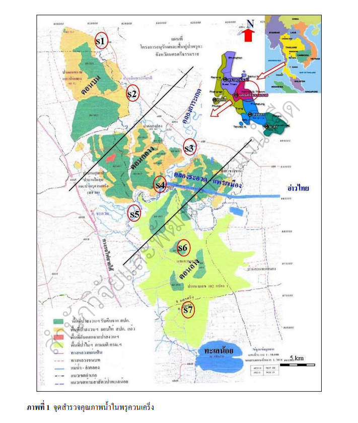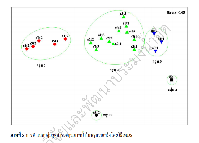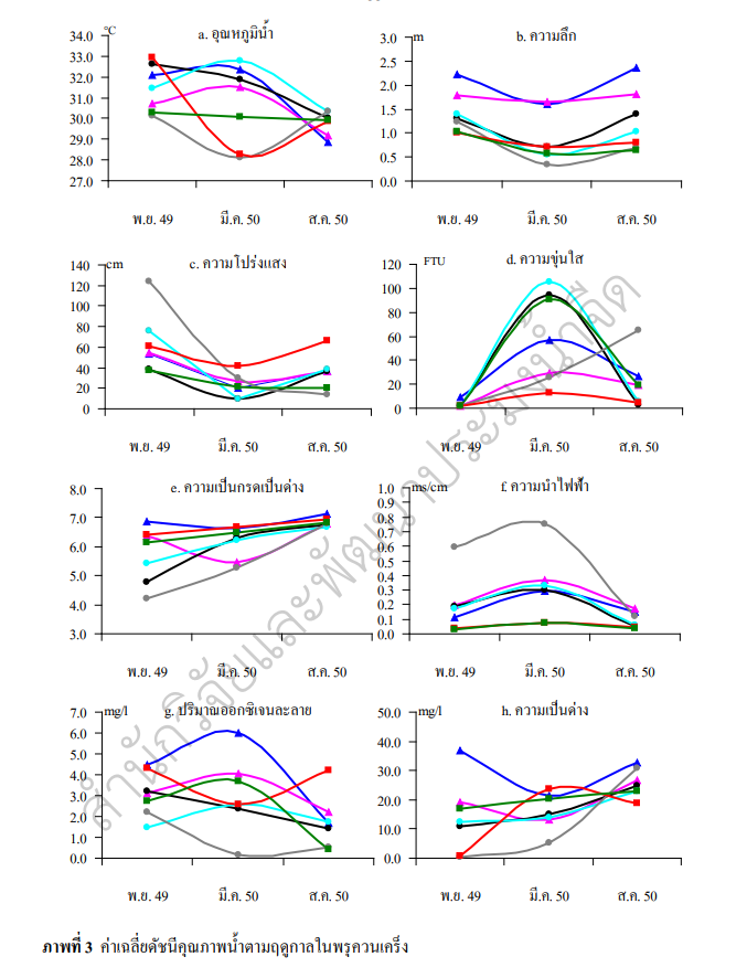 Description ทำการศึกษาคุณภาพน้ำในพรุควรเคร็ง ดำเนินการเก็บตัวอย่าง และวิเคราะห์ดัชนีคุณภาพน้ำ 16 ประการ จำนวน 7 จุดสำรวจ ในพื้นที่จังหวัดนครศรีธรรมราช และจังหวัดพัทลุง ระหว่างเดือนพฤศจิกายน 2549 ถึงเดือนสิงหาคม 2550 จำนวน 3 ครั้ง ผลการศึกษาชี้ให้เห็นว่าอิทธิพลของฤดูกาล ส่งผลต่อการเปลี่ยนแปลงคุณภาพน้ำในพรุควรเคร็งมากกว่าอิทธิพลของพื้นที่ และสามารถจำแนกกลุ่มโดยใช้คุณภาพน้ำเป็นเกณฑ์ได้ 5 กลุ่ม
