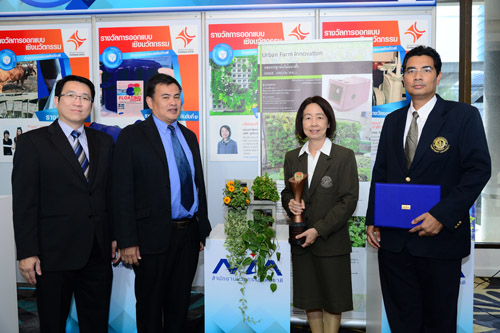 | Description | บล็อกผนังสำหรับปลูกต้นไม้แนวตั้ง มีลักษณะเป็นบล็อกซิเมนต์ ผสมเถ้าลอยใช้ก่อผนังหรือรั้วที่มีช่องใส่ต้นไม้ติดอยู่ด้วย มีขนาด 15x15x25 ซม. รวมทั้งมีระบายน้ำบนและล่างเพื่อให้น้ำไหลผ่านจากชั้นหนึ่งไปยังอีกชั้นหนึ่งได้ทั่วถึง โดยออกแบบสามารถเดินท่อและหัวน้ำหยดฝังอยู่ในบล็อกและสามารถใช้ก่อเป็นกำแพงถาวรหรือชั่วคราวได้โดยใช้เทคนิคพื้นฐาน เป็นผนังที่คงทนถาวร รับแรงอัดได้ตามมาตราฐาน ต้นไม้ที่ใช้เป็นไม้คลุมดิน ไม้พุ่มขนาดเล็กถึงกลางไม้แขวนประดับ พืชผักรับประทานได้ ปลูกในดินหรือวัสดุปลูกทั่วไป ใช้งานได้ในร่มและกลางแจ้ง สามารถเปลี่ยนต้นไม้ได้ง่าย บล็อกซิเมนต์ผสมเถ้าลอยมีอัตราส่วนการใช้เถ้าลอย 20-30 เปอร์เซ็นต์ ซึ่งมีผลให้รับแรงอัดได้น้อยลง แต่ลดปริมาณการใช้ปูนซิเมนต์ลงได้มาก ซึ่งนำไปสู่การลดการปลดปล่อยก๊าซคาร์บอนไดออกไซด์ ได้ผลิตขึ้นเป็นรูป 3 รูปแบบ โดยแบบที่มีลักษณะบล็อกเอียงขึ้นสามารถการใช้งานได้สะดวกที่สุด |
