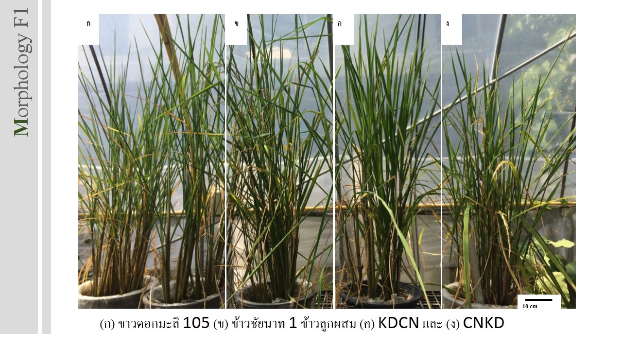 | Keyword | ข้าวหอมมะลิ, ข้าวขาวดอกมะลิ 105, ข้าวชัยนาท 1, การผสมข้ามข้าว, การชักนำการกลายพันธุ์, การเพิ่มชุดโครโมโซม, โคลชิซีน |