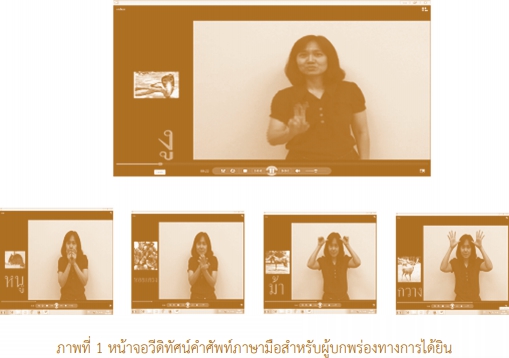 | Keyword | วีดิทัศนคําศัพท์ภาษามือ, ผู้บกพร่องทางการได้ยิน, ความสัมพันธ์ของครอบครัว |