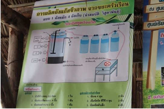 | Description | ก๊าซชีวภาพที่ผลิตขึ้นจากการหมักมูลสัตว์ มูลคน และขยะเหลือทิ้งที่ย่อยสลายได้จากครัวเรือนและชุมชน โดยการหมักในสภาพแวดล้อม เช่น ถังหมักหรือบ่อที่ไร้อากาศ จุลินทรีย์ที่มีอยู่ตามธรรมชาติจะเปลี่ยนอินทรียวัตถุเหล่านี้ให้กลายเป็นก๊าซชีวภาพที่มีคุณสมบัติติดไฟ สามารถนำไปใช้เป็นพลังงานให้ความร้อน ใช้หุงต้ม ให้แสงสว่าง หรือใช้เดินเครื่องจักรเครื่องยนต์ได้ ข้อเด่นของก๊าซแอลพีจีที่เราใช้กันอยู่จนเคยชิน คือ เรื่องแรงดันของก๊าซ ความร้อนของไฟ และการที่สามารถบรรจุในถังก๊าซได้ ซึ่งก๊าซชีวภาพที่เราผลิตจากมูลสัตว์และเศษอาหารในชุดถังหมักนี้จะมีแรงดันต่ำกว่าก๊าซแอลพีจี จึงต้องมีการปรับรูเตาแก๊สให้มีขนาดใหญ่ขึ้น หรือใช้วิธีเพิ่มน้ำหนักกดทับด้านบนของถังเก็บก๊าซหรือทำโครงเหล็กกดถังเก็บก๊าซ ทั้งนี้ เพื่อให้เกิดแรงดันก๊าซชีวภาพที่มากขึ้น เทคโนโลยีก๊าซชีวภาพนี้สามารถแก้ไขปัญหาขยะที่มีมากขึ้น และช่วยแก้ไขปัญหาสิ่งแวดล้อมได้ |