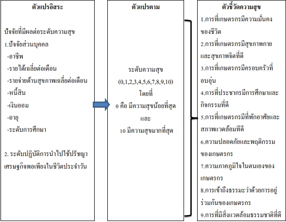 ปัจจัยที่ส่งผลต่อความสุขของเกษตรกรตามปรัชญาเศรษฐกิจพอเพียง กรณีศึกษา: เกษตรกรจังหวัดสุพรรณบุรี (Factors affecting happiness of farmers based on Sufficiency Economy Philosophy case study : Suphanburi farmers) |