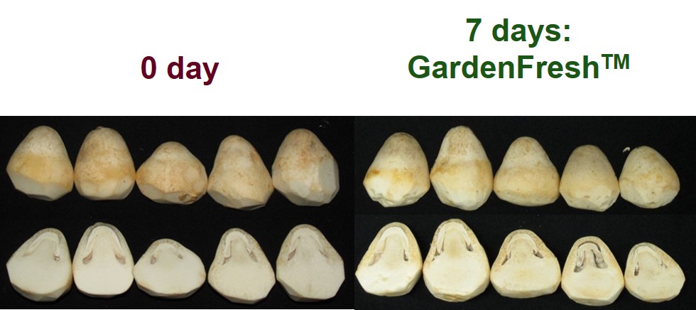 | Description | นวัตกรรม Garden Fresh ถุงยืดอายุรักษ์โลกนั้นสามารถยืดอายุการเก็บรักษาพืชผลสด 2 – 10 เท่า ขึ้นกับชนิดของพืชผลสด เช่น เห็ดฟางที่มีอายุเพียง 1 วันยืดอายุเก็บรักษาเป็น 7 วัน ทำให้ประสบความสำเร็จในการทดสอบส่งออกไปยังประเทศบรูไนในปี 2558 นอกจากเห็ดฟางแล้วยังได้ทดสอบและได้ผลดีกับมะม่วงน้ำดอกไม้ ใบมะกรูด ถั่วฝักยาว ข้าวโพดฝักอ่อน ตะไคร้ พริกขี้หนู ผักกาดหอม มะนาว มะเขือเทศ กระเทียมปอกเปลือก หอมแดงปอกเปลือก ฯลฯ นอกจากนี้ยังมีสูตรสำหรับยืดอายุเนื้อสด ได้ทดสอบและสามารถรักษาคุณภาพเนื้อวัวสดตัดแต่งแช่เย็นจาก 4 วันเป็น 11 วัน และเมื่อทิ้งฝังกลบสามารถย่อยสลายได้ทางชีวภาพภายใน 4 เดือน |