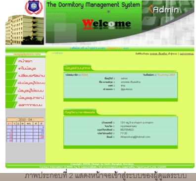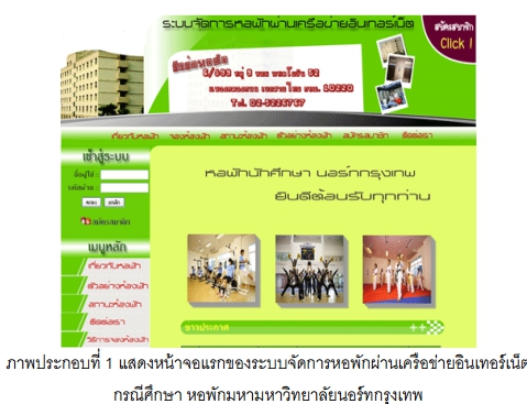 ระบบจัดการหอพักผ่านเครือข่ายอินเตอร์เน็ต กรณี ศึกษาหอพักมหาวิทยาลัยนอร์ทกรุงเทพ |