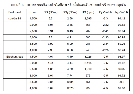 การใช้เชื้อเพลิงก๊าซชีวภาพที่ได้จากมูลช้าง เพื่อผลิตกระแสไฟฟ้า |