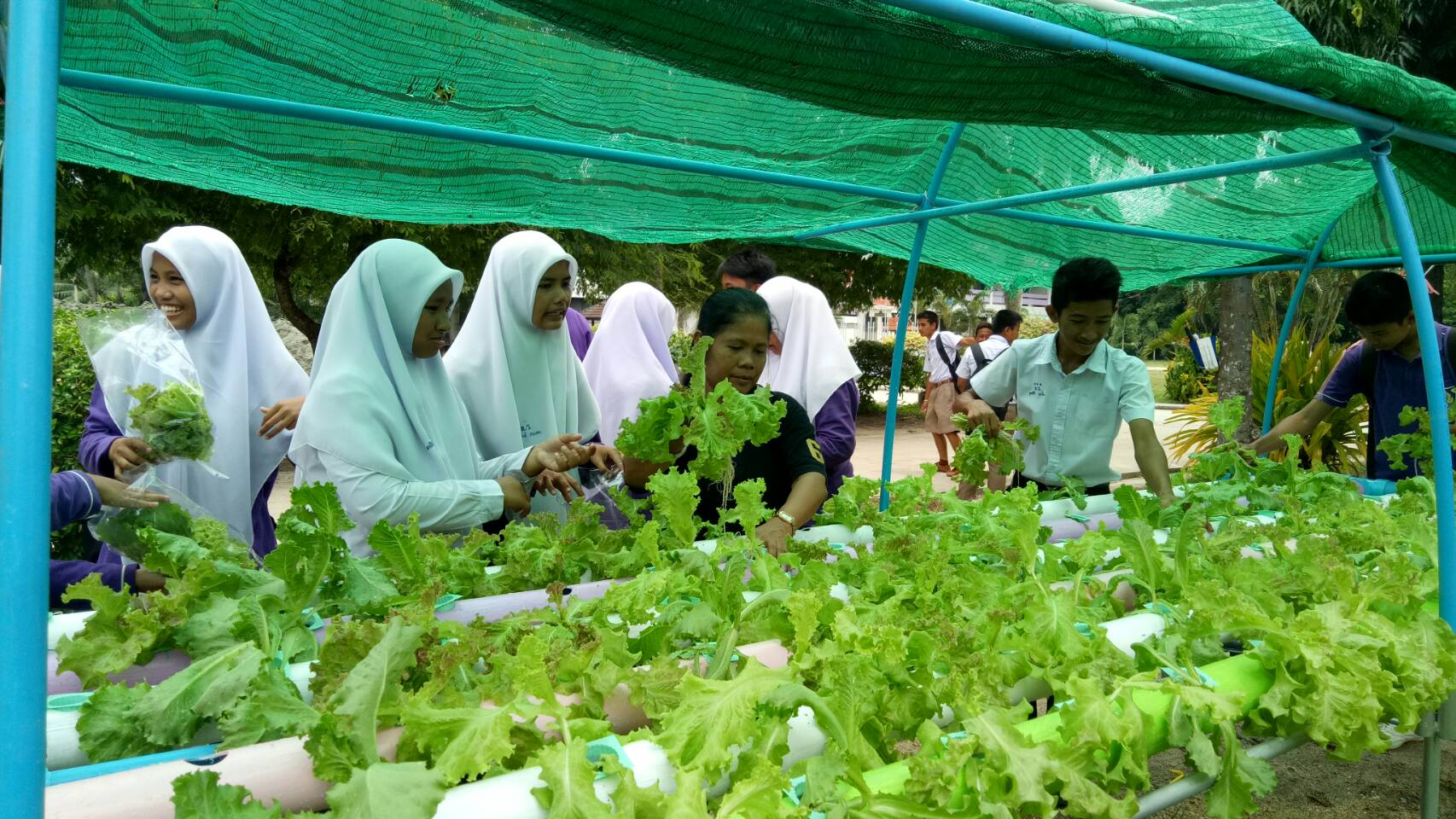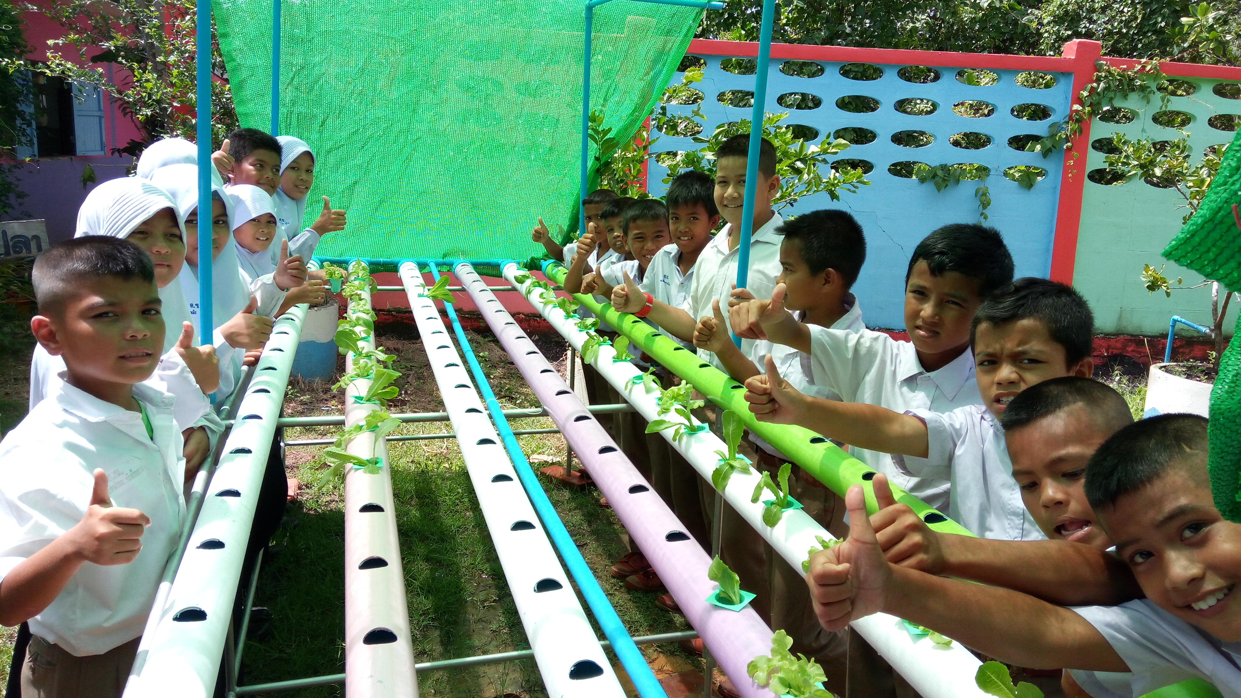 การถ่ายทอดเทคโนโลยีปลูกพืชไม่ใช้ดินเพื่อโครงการอาหารกลางวันในโรงเรียน |