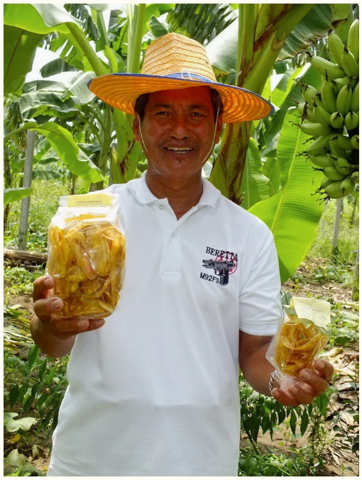 Description ทักษิณ สมหวัง เป็นเกษตรกรภายใต้โครงการสร้างและพัฒนาเกษตรกรรุ่นใหม่ ปี 2554 ได้รับการจัดสรรพื้นที่ 3 ไร่ 2 ไร่ครึ่ง ทำการเกษตร ปลูกกล้วย และแปรรูปเป็นกล้วยฉาบส่งขายในบริเวณหมู่บ้านราคาส่ง 4 บาท ขายในตลาด 5 บาท เป็นรายได้เสริม นอกจากนี้ยังทำน้ำหมักเพื่อให้สารอาหารกับพืชที่ปลูกหรือการฉีดฮอร์โมนด้วย การใช้กล้วย มะละกอ สะเดาะหมักรวมกับกากน้ำตาล 20 กล. ต่อน้ำ 60 ลิตร ใช้เวลาหมัก 1 เดือนหรือพอใช้ได้ แต่หากมีหนอนก็ยิ่งดี ใช้ได้กับพืชทุกชนิด ทุกวันนี้คุณทักษิณพอใจกับการใช้ชีวิตเกษตรกรพอเพียง นอกจากการทำเกษตรแล้ว ระหว่างการทำงานพรวนดิน รดน้ำ ยังถือว่า เป็นการออกกำลังกายไปในตัวด้วย อีกทั้งผลผลิตทางการเกษตรในสวนก็ปลอดภัยจากสารพิษ ผลผลิตที่ได้ไม่ต้องไปซื้อข้างนอกสามารถเก็บเกี่ยวได้ภายในสวนของตนเอง