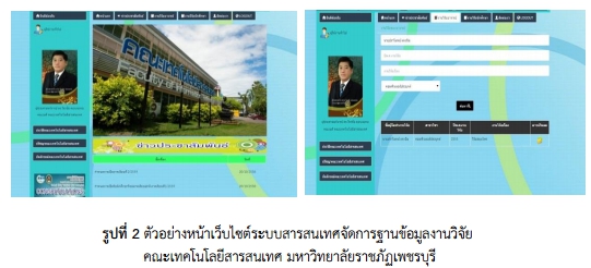 การพัฒนาระบบสารสนเทศจัดการฐานข้อมูลงานวิจัย คณะเทคโนโลยีสารสนเทศ มหาวิทยาลัยราชภัฏเพชรบุรี |