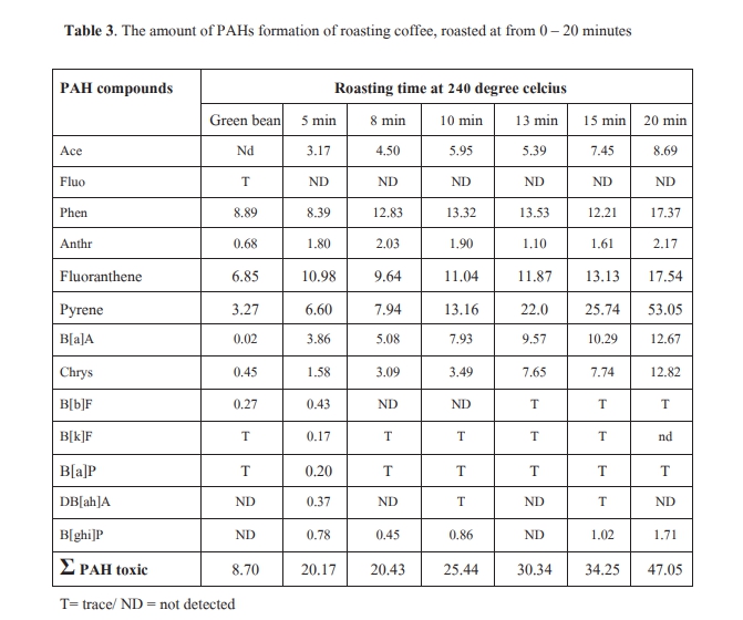 Keyword สารกลุ่ม Polycyclic Aromatic Hydrocarbon, การผลิตกาแฟ, สารก่อมะเร็ง, กาแฟคั่วบด, การเก็บสารกาแฟ