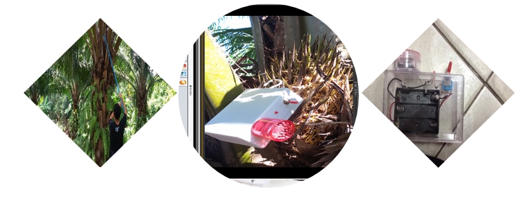 Description การใช้ชุดอุปกรณ์ช่วยผสมเกสรปาล์มน้ำมันในการเพิ่มผลผลิตปาล์มน้ำมัน โดยใช้วงจรของอุปกรณ์เป็นแหล่งกระจายกลิ่นของสารสกัดน้ำมันหอมระเหยจากดอกปาล์มน้ำมันตัวผู้ที่ด้วงงวงปาล์มน้ำมันชอบ และนำไปแขวนที่ส่วนกลางของช่อดอกตัวเมียที่บานแล้ว จะมีจำนวนด้วงงวงปาล์มน้ำมันที่มีขนจำนวนมาก ตามลำตัวจะนำละอองเรณูดอกปาล์มตัวผู้มายังดอกปาล์มตัวเมียเพิ่มขึ้นจากธรรมชาติ 389.71% นวัตกรรมช่วยผสมเกสรปาล์มน้ำมันนี้มีประสิทธิภาพในการเพิ่มผลผลิตปาล์มน้ำมันที่เดิมติดผลเพียง 46.19 % เป็น 70.07 % หรือเพิ่มขึ้นถึง 23.88 % และสามารถเพิ่มรายได้ให้เกษตรกรสูงถึง 10.75 กิโลกรัมต่อ หนึ่งทะลาย และเป็นวิธีการที่สะดวก รวดเร็ว ใช้แรงงานคนน้อย มีความปลอดภัยในการทำงาน ซึ่งอุปกรณ์กระจายกลิ่นนี้มีต้นทุนเพียง 50 บาท/เครื่อง