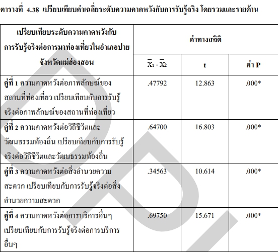 ความคาดหวังและการรับรู้ของนักท่องเที่ยวชาวไทยที่มีต่อการท่องเที่ยวในอำเภอปาย จังหวัดแม่ฮ่องสอน