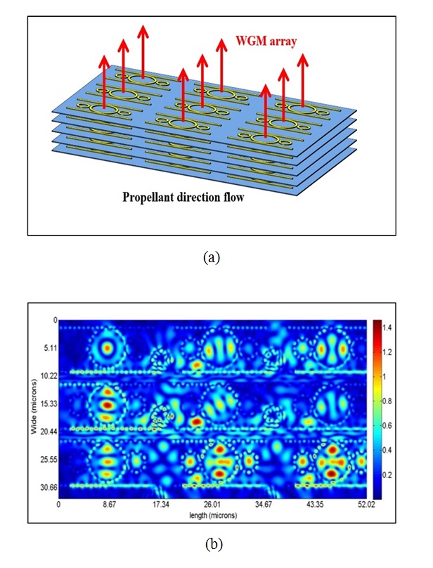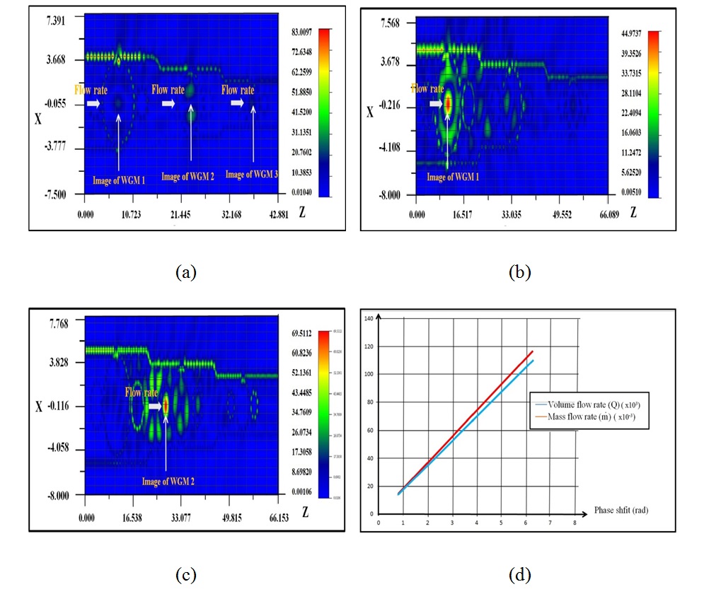 Description Prateep Phathararorn 2019: Analysis of Whispering Gallery Mode Generated by Nonlinear Micro Ring Resonator. Doctor of Philosophy (Physics), Major Field: Physics, Department of Physics. Thesis Advisor: Associate Professor Surasak Chiangga, Dr.rer.nat. 147 pages. Whispering gallery mode (WGM) in optical resonators has widely applications in telecommunications, sensors and also in studying nonlinear optical phenomena. However WGM generated by the third-order nonlinear effects in the resonators have not well understood. This thesis describes the theoretical calculation of whispering gallery mode (WGM) in nonlinear microring resonator (MR) system. The WGM occurred in the MR due to the interaction of third-order nonlinear optical susceptibility of InGaAsP and InP semiconductors. The femtosecond soliton pulses at 1,550 nm wavelength were used to excite the Kerr nonlinear interaction. The WGM outputs were adjusted by various parameters such as radius of the microrings, coupling constant, the width of the bus and ring waveguides. The theoretical calculations were compared with simulations using the finite-different time-domain (FDTD) method and the results showed good agreement with the simulations. The applications of the WGM in the MR system for blood flow rate measurement and propulsion generation are also discussed. งานวิจัยฉบับนี้สามารถสร้างแบบจำลองวงแหวนทำจากสารเคมี InGaAsP/InP ซึ่งวงแหวนที่นิยมใช้มากสุดเป็น วงแหวนชนิด แพนด้า (Panda ring resonator) เพื่อสำหรับให้แสงผ่าน และสร้างสัญญาณ Whispering Galley Mode signal จากเงือนไขของปรากฏการณ์ WGM และสามารถนำสัญญาณที่ได้จากระบบวงแหวนชนิดต่าง ๆๆ ไปวัดค่าความลึกของวัสดุที่ใช้ทดสอบ และวัดค่าความเร็วของ ของไหลในวัสดุที่ใช้ทดสอบ โดยผลที่ได้แสดงในรูปแบบภาพ 3 มิติ ต่อ 1 พิเซลภาพ