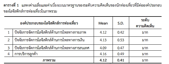 | Keyword | ประสิทธิภาพ, การจัดการโลจิสติกส์, แหล่งท่องเที่ยว |