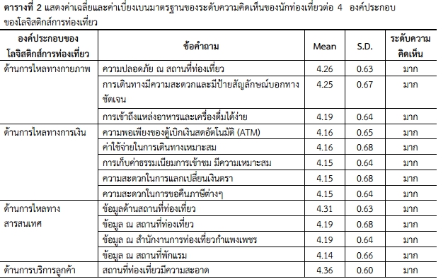 ประสิทธิภาพการจัดการโลจิสติกของแหล่งท่องเที่ยวจังหวัดกำแพงเพชร |