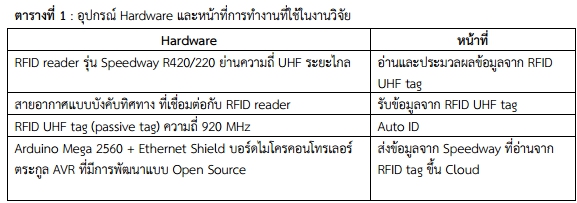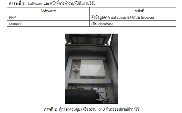 | Description | การประยุกต์ใช้ระบบ Auto ID ให้กับรถขนถ่านหินลิกไนต์ในเหมืองการไฟฟ้าฝ่ายผลิตแม่เมาะ จังหวัดลำปาง เก็บข้อมูลผ่านระบบ Private cloud computing ของการไฟฟ้าแม่เมาะเพื่อการจัดการ logistic ที่ดี อุปกรณ์ที่ใช้ในการวิจัยได้แก่ RFID Reader,UHF passive RFID tag,Arduino Mega 2560+Ethenet Shield, ภาษา PHP และ Maria DB เป็นระบบฐานข้อมูล โดยติดตั้ง UHF passive Tag กับรถขนถ่านหินจำนวน 27 คัน และติดตั้งเครื่องอ่าน RFID 1 จุดที่ตำแหน่งเครื่องบดถ่านหินลิกไนต์ที่ 3 และระบบนี้ใช้งานมาประมาณ 1ปี และใช้งานจริงในสภาพการทำงานจริงเหมือนที่มีฝุ่นละออง และคราบน้ำมันจากการทำเหมืองถ่านหินลิกไนต์ พบว่า เจ้าหน้าที่ผู้รับผิดชอบข้อมูลทั้งฝ่ายเหมือง ฝ่ายสารสนเทศ และฝ่ายวางแผน จำนวน 25 คน มีความพึงพอใจในระบบนี้ ซึ่งอำนวยความสะดวกในการตรวจสอบการจัดการ logistic เช่น การจัดคิว การตรวจสอบข้อมูลของรถขนถ่านหินลิกไนต์ว่ามาจากบ่อไหน และเข้าที่บดถ่านหินลิกไนต์ไหน การไม่มีข้อผิดพลาดในการอ่านข้อมูลของระบบ และความสามารถในการลดขั้นตอนการทำงานจากเดิม |