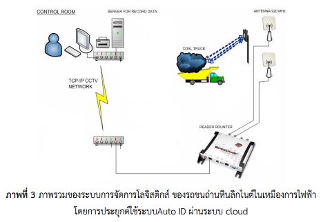 การจัดการโลจิสติกส์รถขนถ่านหินลิกไนต์ในเหมืองการไฟฟ้าฝ่ายผลิต แม่เมาะ จังหวัดลำปาง โดยการประยุกต์ใช้ระบบ Auto ID ผ่านระบบคราว Cloud Computing |