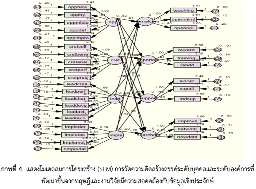 โมเดลความสัมพันธ์เชิงสาเหตุระหว่างความคิดสร้างสรรค์ระดับบุคคลสู่นวัตกรรมและความคิดสร้างสรรค์ระดับองค์การสู่นวัตกรรมกับข้อมูลเชิงประจักษ์