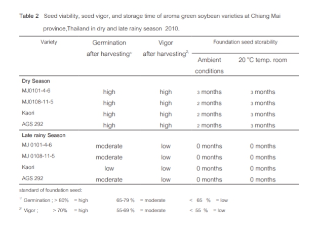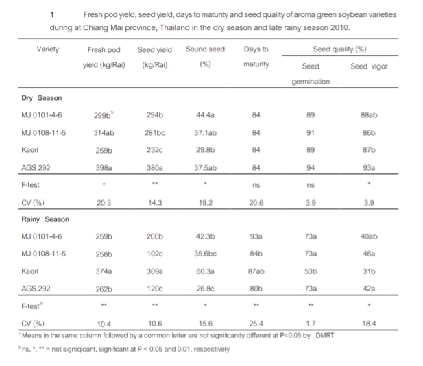 การเปรียบเทียบศักยภาพของผลผลิตเมล็ดพันธุ์และคุณภาพ ในการเก็บรักษาของถั่วเหลืองฝักสดกลิ่นหอม |