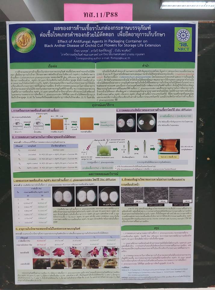 | Keyword | โรคเกสรดำ, กล้วยไม้ตัดดอก, นาโนซิลเวอร์, กล่องบรรจุภัณฑ์, กระดาษต้านเชื้อรา |