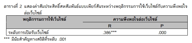 Keyword พฤติกรรมการใช้เว็บไซต์, การใช้ประโยชน์และความพึงพอใจ, เว็บไซต์
