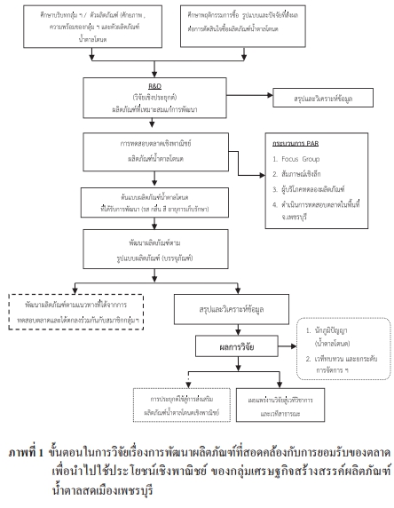 การประยุกต์ใช้ภูมิปัญญาสู่การพัฒนาผลิตภัณฑ์เชิงพาณิชย์ กรณีศึกษา น้ำตาลสดเมืองเพชรบุรี |