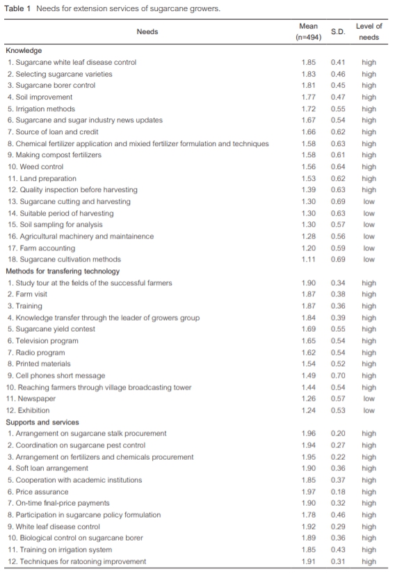 ความต้องการบริการส่งเสริมการเกษตรของเกษตรกรชาวไร่อ้อย ในภาคตะวันออกเฉียงเหนือ
