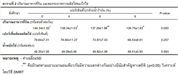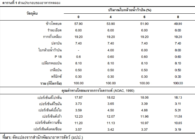 การใช้ใบกล้วยน้ำว้าในอาหารเลี้ยงไก่ไข่ |