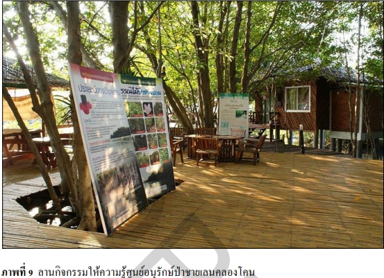 | Description | การสัมภาษณ์คนชุมชนท้องถิ่นคลองโคน 354 คน พบว่า หน่วยงานทุกหน่วยงานที่เกี่ยวข้องมีความรู้ความเข้าใจการท่องเที่ยวเชิงนิเวศในระดับดี โดยจัดกิจกรรมต่างๆ ให้สอดคล้องกับวัตถุประสงค์ของการท่องเที่ยว ซึ่งเป็นการอนุรักษ์ทรัพยากรป่าชายเลน และการชมวิถีชีวิตของคนในชุมชนท้องถิ่น ประกอบกับมีการกำหนดแผนงาน จัดกิจกรรมที่ช่วยให้คนในชุมชนท้องถิ่นได้มีส่วนร่วมการอนุรักษ์ ดูแล รักษา แหล่งท่องเที่ยว และที่สำคัญมีการกระจายรายได้ให้กับคนในชุมชนท้องถิ่น โดยมีการประชาสัมพันธ์แหล่งท่องเที่ยวด้วยสื่อต่างๆ ศูนย์อนุรักษ์ป่าชายเลนคลองโคนต้องการศูนย์การเรียนรู้ชุมชน ผู้ประกอบการโฮมสเตย์และรีสอร์ทต้องการโครงการเกี่ยวกับการรณรงค์การปลูกป่าชายเลนให้มีอย่างต่อเนื่อง |