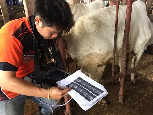 | Description | การติดตามการเปลี่ยนแปลงของฟอลลิเคิลบนรังไข่ด้วยเทคนิคการอัลตร้าซาวด์รังไข่ในตัวสัตว์ตามเวลาจริง (real-time in-vivo ovarian ultrasonography) ช่วยสนับสนุนความเข้าใจในองค์ความรู้พื้นฐานที่เกี่ยวข้องกับรูปแบบการเปลี่ยนแปลงของฟอลลิเคิลบนรังไข่ ลักษณะของ Corpus luteum และการตกไข่ ดังนั้นสามารถนำองค์ความรู้ที่ได้ไปออกแบบโปรแกรมฮอร์โมนเพื่อใช้ในการจัดการการสืบพันธุ์ (reproductive management) ในโคนางพันธุ์ขาวลำพูน ด้วยการควบคุมการพัฒนาของฟอลลิเคิล รวมทั้งเหนี่ยวนำการตกไข่ (ovulation synchronization) ได้ |