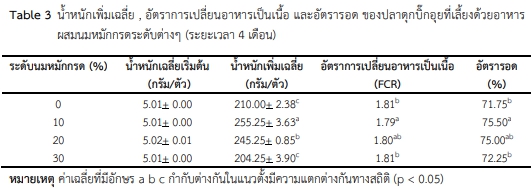 ผลของนมหมักกรดในสูตรอาหารเลี้ยงปลาดุกบิ๊กอุยในกระชัง |
