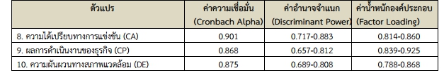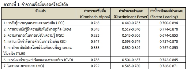 Keyword การรับรู้ความรุนแรงทางการแข่งขัน, การตระหนักรู้ถึงความสัมพันธ์ทางธุรกิจ, ศักยภาพกลยุทธ์เครือข่าย, โอกาสทางการตลาด, ความได้เปรียบทางการแข่งขัน, ผลการดำเนินงานทางธุรกิจ