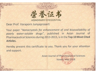 Description นาโนคริสตัล เป็นระบบนำส่งชนิดคอลลอย์ที่ปราศจากสารตัวพา ซึ่งนับเป็นแนวทางที่น่าสนใจต่อการนำไปพัฒนาเป็นระบบนำส่ง สำหรับตัวยาที่มีการละลายน้ำได้น้อย นาโนคริสตัมีคุณลักษณะเฉพาะ ได้แก่ การเพิ่มการละลายอิ่มตัวการเพิ่มอัตราเร็วการละลาย และการยึดติดกับพิ้นผิวหรือเซลล์เมมเบรน การผลิตนาโนคริสตัลทำได้ด้วยหลายกลยุทธ์ เช่น การตกตะกอน การบดด้วยเครื่องปั่นผสมเป็นเนื้อเดียวกันชนิดความดันสูง และการใช้หลายวิธีการร่วมกัน เช่น Edge™, SmartCrystal และ Precipitation – Lyophilization – Homogenization (PLH) งานวิจัยหลายเรื่อง ได้รายงานข้อดีที่เป็นประโยชน์ของนาโนคริสตัลต่อยาที่ให้ทางปาก ซึ่งจะช่วยปรับปรุงการแสดงประสิทธิภาพของตัวยาในร่างกาย ได้แก่ เภสัชจลนศาสตร์ เภสัชพลศาสตร์ รวมทั้งความปลอดภัย และการนำส่งสู่เป้าหมาย สิ่งต่าง ๆ เหล่านี้ได้รวบรวมแสดงไว้ในการทบทวนครั้งนี้ นอกจากนั้น ยังได้มีการนำเสนอเรื่องการปรับเปลี่ยนนาโนคริสตัลให้เป็นสูตรตำรับ รวมทั้งแนวโน้มของการประยุกต์ใช้นาโนคริสตัลในอนาคต