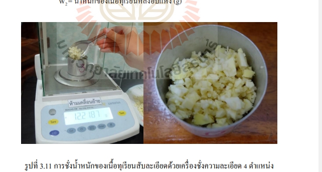 | Description | ศึกษาและพัฒนาเทคนิคการตรวจสอบระยะความแก่ของทุเรียนพันธุ์หมอนทอง ด้วยวิธีการตรวจสอบแบบไม่ทำลายโดยการใช้วิธีทางสเปคโตรสโคปี และวิธีการวิเคราะห์ภาพถ่าย ในการจำแนกความสุกแก่ของทุเรียนได้ค่าร้อยละน้ำหนักแห้งของเนื้อทุเรียน และค่าอายุวันหลังดอกบานเป็นค่าอ้างอิงความสุกแก่ของผลทุเรียน จากการสร้างสมการทำนายด้วยเทคนิคสเปคโตรสโคปีและการวิเคราะห์ภาพถ่าย พบว่าในการจำแนกทุเรียนออกเป็น 8 ช่วงอายุตั้งแต่ 100-135 วันหลังดอกบาน และจำแนกทุเรียนออกเป็น 2 ระยะ คือ ทุเรียนอ่อน กับ ทุเรียนแก่ที่เหมาะสมต่อการเก็บเกี่ยวด้วยค่าร้อยละน้ำหนักแห้ง ผลการตรวจสอบพบว่าวิธีทางสเปคโตรสโคปีย่านแสงที่มองเห็นได้สามารถจำแนกได้ถูกต้อง 91.2 เปอร์เซ็นต์ และวิธีการประมวลผลภาพถ่ายสามารถจำแนกได้ถูกต้อง 89.2 เปอร์เซ็นต์ |