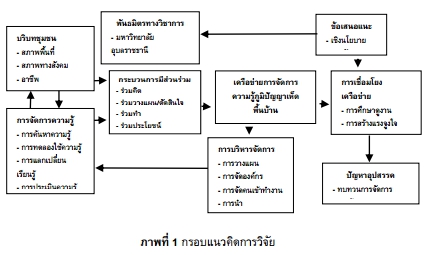 | Description | ศึกษารูปแบบการจัดการความรู้เพื่อการอนุรักษ์เห็ดพื้นบ้านและการสร้างเครือข่ายการเรียนรู้ภูมิปัญญาเห็ดพื้นบ้านของชุมชนในจังหวัดอุบลราชธานี พบว่า ชุมชนบ้านโพธิ์ตก และชุมชนบ้านโนนเค็ง อำเภอวารินชำราบ จังหวัดอุบลราชธานี มีความรู้ในการอนุรักษ์ และการจัดการความรู้ภูมิปัญญาเรื่องเห็ดพื้นบ้าน ซึ่งเคยเป็นแหล่งอาหารที่มีความอุดมสมบูรณ์ ในอดีตให้กลับคืนมาเป็นอาหารและยาสำหรับลูกหลานในปัจจุบัน ประกอบด้วย 6 ขั้นตอน คือ1. การสนทนาและการค้นหาข้อมูล 2.การทดลองและการเรียนรู้ 3.การแลกเปลี่ยนเรียนรู้ 4.การประเมินความรู้ 5.การจัดเก็บความรู้ และ 6.การเผยแพร่ความรู้ และพบว่า ชุมชนมีกระบวนการสร้างเครือข่ายภูมิปัญญาแบบอิงระบบ คนในชุมชนมีส่วนร่วม มีการบริหารจัดการเครือข่ายอย่างเป็นระบบ มีความยืนหยุ่นในการเรียนรู้เป็นเครือข่ายแนวราบที่มีพลังในการจัดการความรู้ เพื่อการพัฒนาอาชีพยั่งยืน ประกอบด้วยเครือข่ายโพธิ์ตก เครือข่ายโนนเค็ง เครือข่ายแดงหม้อ เครือข่ายนาตาล และเครือข่ายหนองครก โดยมีมหาวิทยาลัยเป็นเครือข่ายวิชาการ |