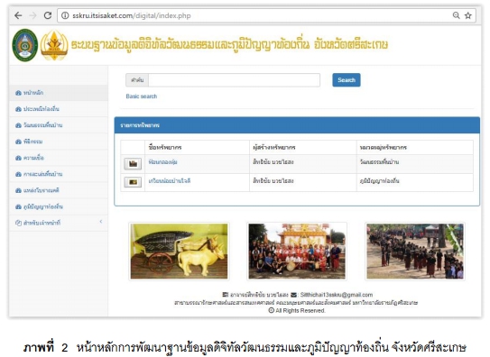 | Title | ฐานข้อมูลสารสนเทศดิจิทัล วัฒนธรรมและภูมิปัญญาท้องถิ่น จังหวัดศรีสะเกษ |