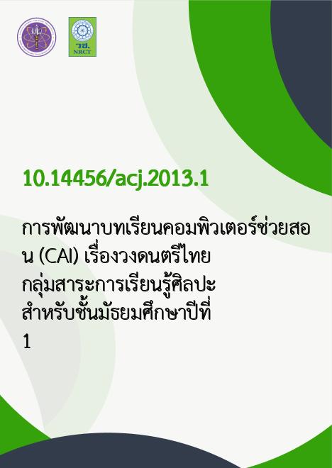 การพัฒนาบทเรียนคอมพิวเตอร์ช่วยสอน (CAI) เรื่องวงดนตรีไทย กลุ่มสาระการเรียนรู้ศิลปะ สําหรับชั้นมัธยมศึกษาปีที่ 1