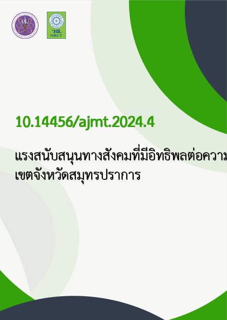 แรงสนับสนุนทางสังคมที่มีอิทธิพลต่อความสุขของผู้สูงอายุเขตจังหวัดสมุทรปราการ |