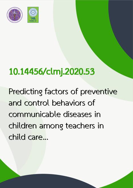 Predicting factors of preventive and control behaviors of communicable diseases in children among teachers in child care centers, Bangkok Metropolitan Administration