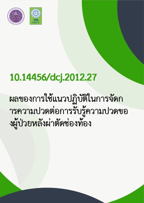 | Title | ผลของการใช้แนวปฏิบัติในการจัดการความปวดต่อการรับรู้ความปวดของผู้ป่วยหลังผ่าตัดช่องท้อง |