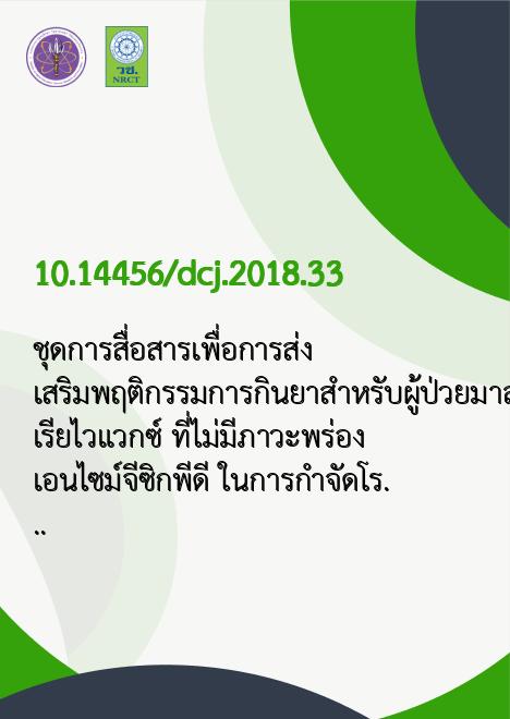 ชุดการสื่อสารเพื่อการส่งเสริมพฤติกรรมการกินยาสำหรับผู้ป่วยมาลาเรียไวแวกซ์ ที่ไม่มีภาวะพร่องเอนไซม์จีซิกพีดี ในการกำจัดโรคไข้มาลาเรียตามแนวชายแดนภาคเหนือ ประเทศไทย |