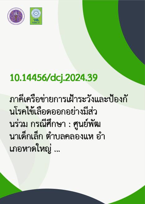 ภาคีเครือข่ายการเฝ้าระวังและป้องกันโรคไข้เลือดออกอย่างมีส่วนร่วม กรณีศึกษา : ศูนย์พัฒนาเด็กเล็ก ตำบลคลองแห อำเภอหาดใหญ่ จังหวัดสงขลา |