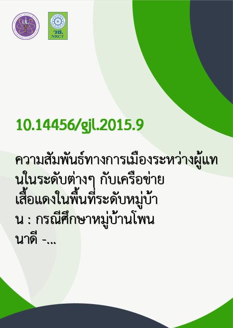 Abstract การศึกษาครั้งนี้มีวัตถุประสงค์เพื่อศึกษารูปแบบ ลักษณะความสัมพันธ์ ทางการเมืองในพื้นที่ เงื่อนไขหรือปัจจัยที่นำไปสู่ความสัมพันธ์ทางการเมืองในพื้นที่ และผลของความสัมพันธ์ระหว่างผู้แทนตั้งแต่ระดับกำนัน - ผู้ใหญ่บ้าน ผู้บริหารและ สมาชิกสภาท้องถิ่น และสมาชิกสภาผู้แทนราษฎร กับเครือข่ายคนเสื้อแดงในพื้นที่ ระดับหมู่บ้าน ประชากรเป้าหมาย ได้แก่ กำนัน - ผู้ใหญ่บ้าน, ผู้บริหารและสมาชิก สภาท้องถิ่น และสมาชิกสภาผู้แทนราษฎรหรือตัวแทนของสมาชิกสภาผู้แทนราษฎรที่ ดูแลพื้นที่ ประธานกลุ่มเครือข่ายต่างๆ ในหมู่บ้าน ผู้อาวุโสหรือแกนนำชาวบ้านที่เป็น ที่นับถือของคนในหมู่บ้าน ชาวบ้านที่เคยเข้าร่วมกิจกรรมทางการเมืองในระดับต่างๆ จำนวนทั้งสิ้น 18 คน พื้นที่ศึกษา ได้แก่ หมู่บ้านโพนนาดี โพนวิสัย หมู่ที่ 3, 4, 6 และ 10 ตำบลหนองผือ อำเภอเขาวง จังหวัดกาฬสินธุ์ ใช้วิธีการสัมภาษณ์เชิงลึกและ การสัมมนากลุ่มย่อยระหว่างกลุ่มตัวอย่างด้วยกัน เป็นเครื่องมือในการเก็บรวบรวมข้อมูล วิเคราะห์ข้อมูลด้วยการวิเคราะห์ความสอดคล้องระหว่างเนื้อหา เชื่อมโยงแนวคิดและ ทฤษฎีที่เกี่ยวข้อง ผลการศึกษาพบว่า รูปแบบและลักษณะความสัมพันธ์ทางการเมือง ระหว่างผู้แทนในระดับต่างๆกับเครือข่ายคนเสื้อแดงในระดับหมู่บ้าน มีหลายรูปแบบ ซึ่งนำไปสู่การเกิดเครือข่ายคนเสื้อแดงในหมู่บ้านเพื่อขับเคลื่อนแนวคิดการพัฒนาชีวิต ความเป็นอยู่ของชาวบ้านด้วยกันเองให้ไปสู่ความกินดีอยู่ดีและมีคุณภาพชีวิตที่ดีได้ โดยไม่ผ่านผู้แทนในระดับต่างๆ ที่เป็นตัวแทนในหมู่บ้าน หรือให้ผู้แทนเป็นเพียงฝ่าย สนับสนุนแนวคิดดังกล่าวของเครือข่ายชาวบ้าน หรืออำนวยความสะดวกให้ชาวบ้าน ทำงานตามแนวคิดตนไปสู่ความสำเร็จตามที่ปรารถนา