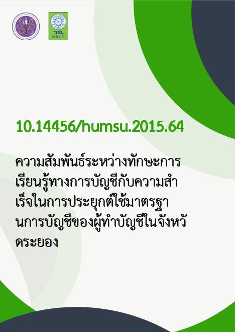 ความสัมพันธ์ระหว่างทักษะการเรียนรู้ทางการบัญชีกับความสำเร็จในการประยุกต์ใช้มาตรฐานการบัญชีของผู้ทำบัญชีในจังหวัดระยอง |