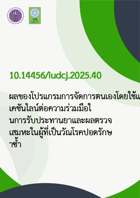 ผลของโปรแกรมการจัดการตนเองโดยใช้แอปพลิเคชันไลน์ต่อความร่วมมือในการรับประทานยาและผลตรวจเสมหะในผู้ที่เป็นวัณโรคปอดรักษาซ้ำ |